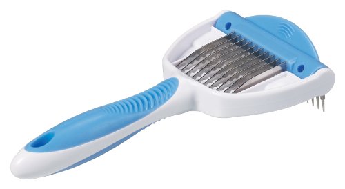 Bamboo's Dog Undercoat & Dematting Rake is a multifunction grooming tool. The stainless steel undercoat rake flips up to remove dead undercoat and to prevent mats from forming. Flip to the dematting rake to cut through tough knots and mats without damaging coat length. The cushioned non-slip handle provides a comfortable grip.